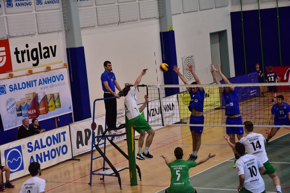 Odbojkarji Panvite Pomgrad so v Kanal pripotovali brez odličnega blokerja Flisarja. Pri Salonitu Anhovo pa ekipi ni mogel pomagati rahlo poškodovani podajalec Živanović. Domači so z blokom Basanežeta povedli 4:2. Gostje so imeli težave s sprejemom začetnega udarca. Po asu Peterlina pri rezultatu 7:3 je gostujoči trener Fujs s polminutnim odmorom poizkušal prekiniti nalet Kanalcev. S tremi zaporednimi bloki so gostje izenačili na 7:7. V nadaljevanju prvega niza sta bili ekipi praktično zalepljeni vse do rezultata 15:13, ko so domači spet pobegnili za dve točki. Borbeni Prekmurci se niso predali in s uspešnim napadom Pulka spet povedli 16:17, ko je odreagiral domači trener Šimunčić. V končnici niza so gostje veliko grešili v napadu. Domači sprejemalec Peterlin je z uspešnim napadom izkoristil tretjo zaključno žogo in pustil ekipo iz Murske Sobote na 21. točki.
