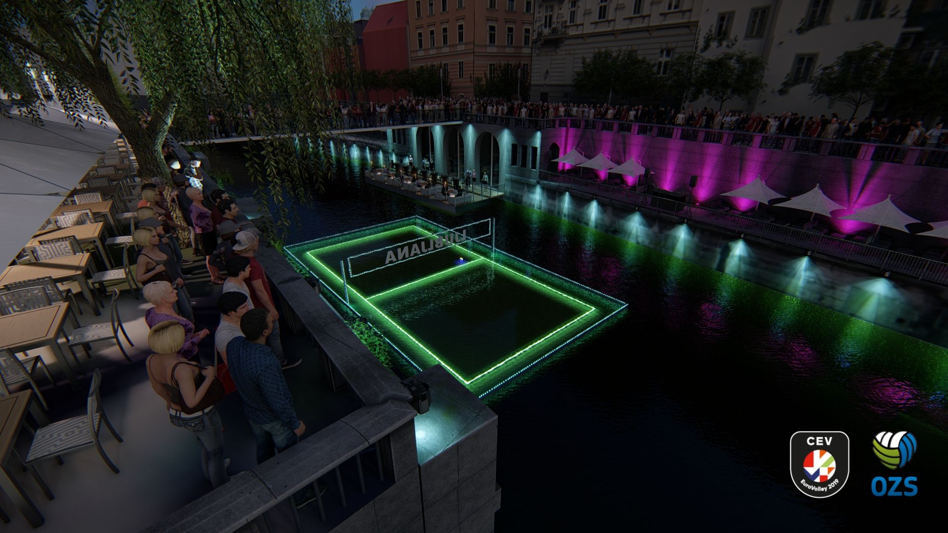 Organizatorji večernega spektakla, ki bo pod okriljem Odbojkarske zveze Slovenije potekal v sklopu promocije septembrskega evropskega prvenstva, že odštevajo ure do splavitve enkratnega odbojkarskega igrišča, ki se bo v vsem svojem razkošju zableščal na Ljubljanici, v neposredni bližini Tromostovja, Ribje brvi oziroma lokala Makalonca.