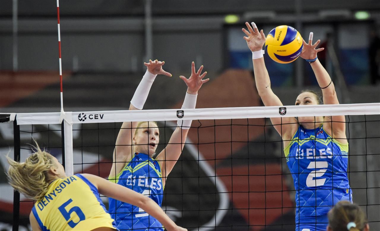 Ščuka in Mlakarjeva sta v odločilnem nizu Sloveniji zagotovili prvi točki za 2:0, Planinščeva pa naslednji za 4:1. Po odlični obrambi Janežičeve in varanju Potokarjeve so naše vodile s 6:2, a je z neugodnimi servisi Kraiduba znižala na 6:4, Ščuka je dosegla pomembno točko za 7:4. Dve napaki naših sta tekmicam pomagali do 7:6, nato je z napadom uspela Mlakarjeva, Potokarjevi pa je uspel as za 9:6. Po napaki Ukrajink in bloku Grudine je bil rezultat 11:6 v korist naših. Ukrajinke so za odtenek znižale zaostanek na 8:12, česa več pa jim Slovenke niso dopustile. Mlakarjeva je bila uspešna v napadu, nato pa sta s Planinščevo sestavili še dvojni blok. Tekmo je z izjemnim solo blokom zaključila prav Planinščeva in Slovenija se je veselila uvrstitve v izločilne boje evropskega prvenstva.