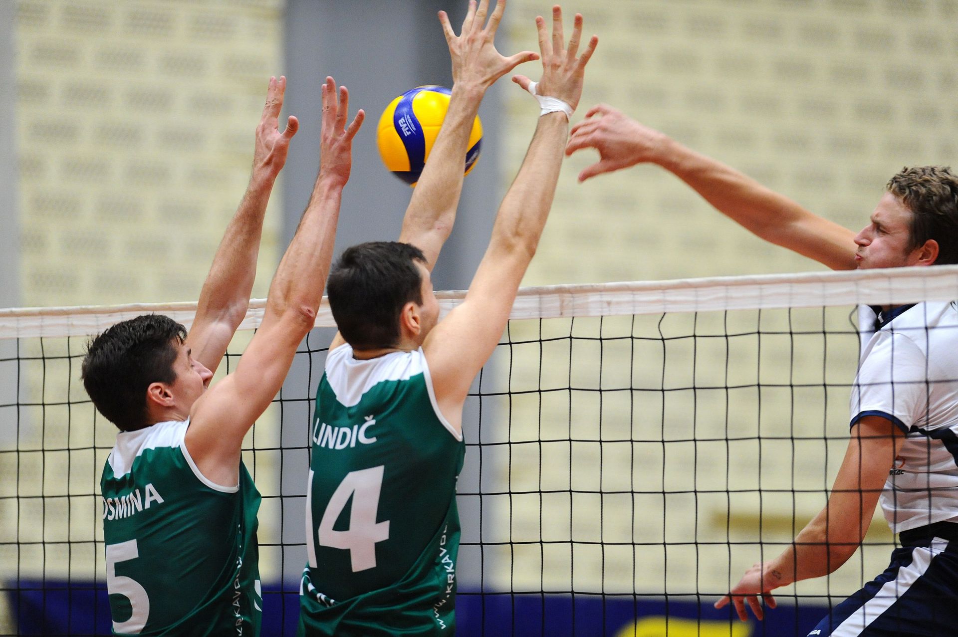 Podobno kot v drugem nizu, so tudi na začetku tretjega bolje začeli domači, a po odmoru Mišina so se gostje zbrali in poravnali izid na 5:5, nato pa z dobro igro v napadu tudi povedli za 2 točki. Kranjčani so jih pri 10 za kratko ujeli, a precej boljša igra Krke preko sredine igrišča je zadoščala za vzdrževanje prednosti 2 do 3 točk. Še naprej je bil neustavljiv Sergej Drobnič. Kosmina je z asom popeljal goste v vodstvo 13:17. Kranjčani so še enkrat uspeli priti do izenačenja na 17. točki, a do vodstva niso uspeli priti, saj so naredili preveč napak na servisu. Od 20. točke naprej sta se ekipi igrali točko za točko, dokler niso gostje prek Kosmine prišli do prednosti 21:23. Prek Lindiča so gostje prišli do zaključne žoge, tekmo pa ja dokončal Bošnjak, ki je poslal žogo izven igrišča.