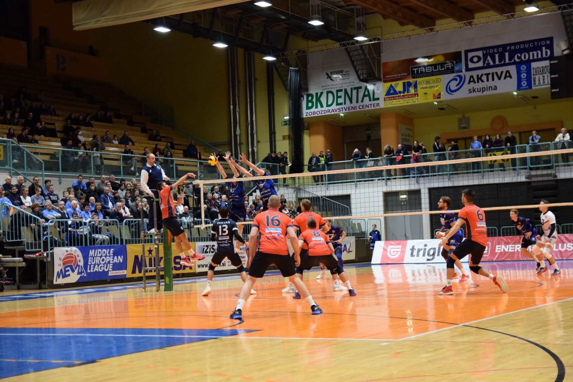Tekmo so bolje odprli gostje s Hrvaške, ki so takoj povedli s 5:1. Nato so se prebudili tudi domači, ki so po seriji točk prišli do vodstva z 11:8, zato je trener gostov Ivan Rančić z odmorom hotel ustaviti serijo gostiteljev. V samo končnico niza je po odmoru na zahtevo ekipe Mladost Kaštela Maribor odšel s prednostjo dveh točk, pri 20:18. Po izjemno napeti končnici je Filip Uremovič z neubranljivim servisom niz končal v prid Maribora s 26:24.