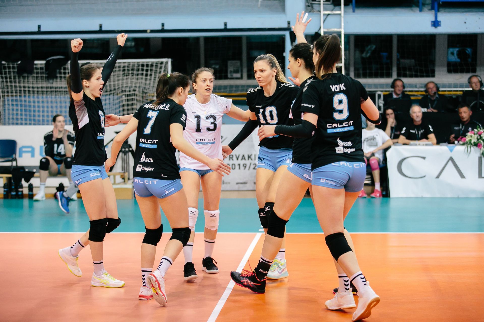 Calcit Volley: Zbičajnik, Griljc (L), Kotnik, Mihevc, P. Marušič 6, Š. Marušič 5, Vovk 11, Mihalinec, Brulec Kostić 28, Zatković 4, Janežič (L), Charuk 16, Jerala, Kaker 8. Trener: Gregor Rozman.