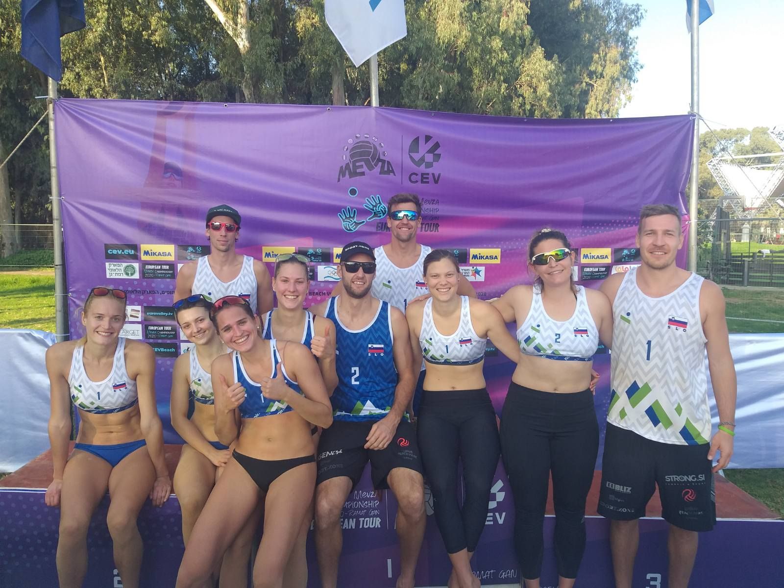 Pri dekletih smo danes spremljali polfinalna obračuna. Morganova in Fabjanova sta proti Izraelkama Yael Lotan in Yahli Ashush prišli do gladke zmage z 21:10 in 21:15. Precej več dela sta imeli Kotnikova in Lovšinova, ki sta prvi niz proti še enima domačima predstavnicama, Aniti Dave in Sofii Starikov, izgubili s 16:21, v napetem drugem slavili s 24:22 in nato s 15:8 dobili še tretji, odločilni, niz. Zlatega odličja v novem slovenskem finalu sta se veselili Špela Morgan in Katarina Fabjan, ki sta bili boljši z 21:16 in 22:20.