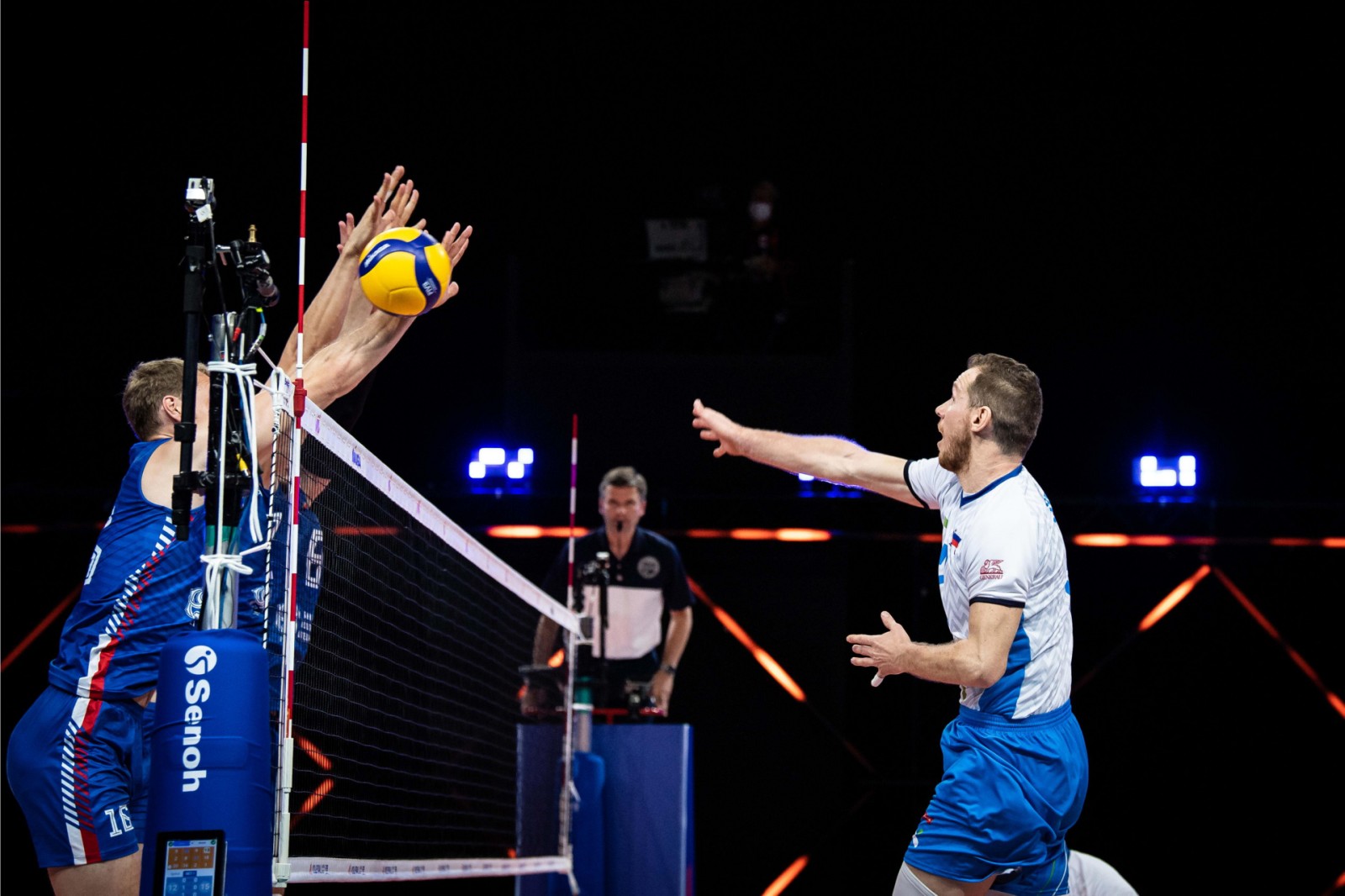 Slovenski selektor Alberto Giuliani je na prvi tekmi Lige narodov proti Srbiji v ogenj poslal Dejana Vinčića, Tončka Šterna, Jana Kozamernika, Alena Pajenka, Tineta Urnauta, Klemna Čebulja in Janija Kovačiča, ob še sedmerici igralcev na klopi pa sta tekmo s strani spremljala Alen Šket in Gregor Pernuš.