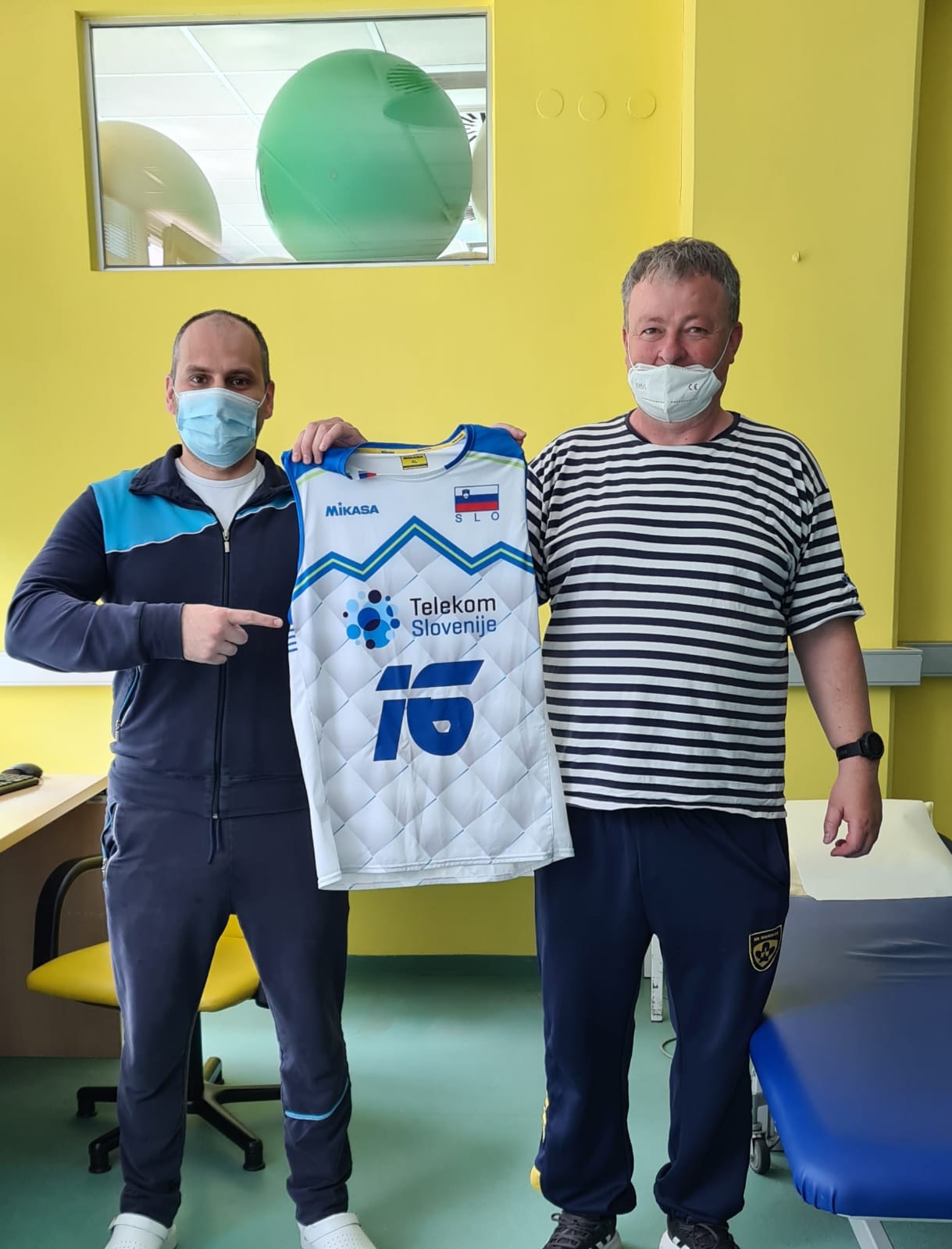 Kakšne manj prijetne trenutke v procesu zdravljenja poškodb mu bo zagotovo lajšal pogled na dres slovenske reprezentance s podpisi vseh reprezentantov, ki so mu ga slovenski odbojkarji z veseljem poklonili. Zahvala gre tudi fizioterapevtu Samirju.