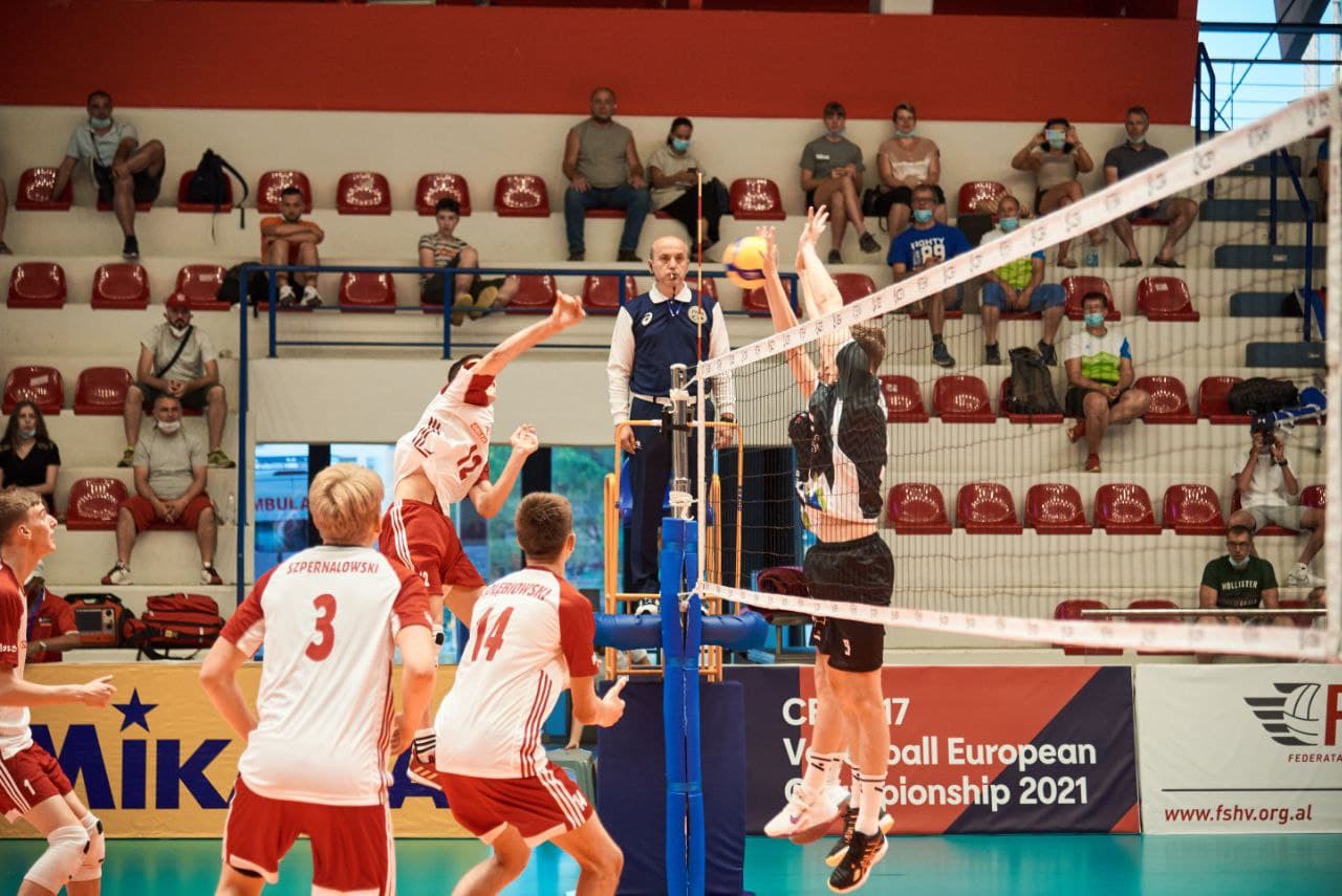 V Tirani smo bili priča izjemnemu polfinalnemu obračunu, v katerem so Slovenci zmagali brez izgubljenega niza, a so v vseh setih slavili šele v končnici. Varovanci Iztoka Kšele so izpolnili svoje napovedi ter tudi tekmo za uvrstitev v finale začeli zbrano. Uvod v prvi niz je bil izenačen, ekipi sta se večkrat izmenjali v vodstvu, po napadu Luke Marovta so za dve točki pri 5:3 prvi povedli, a so Poljaki vrnili z enako mero. Tudi v nadaljevanju so naši odbojkarji narekovali ritem in ohranjali minimalno prednost (14:13), po bloku Jakuba Nowaka pa so se v ospredje spet prebili tekmeci, ki so zatem celo nevarno pobegnili na 17:14, vendar je sledil niz slovenskih točk na začetni udarec Jurija Omana. Miha Okorn je z dvema napadoma Slovencem prinesel vodstvo z 19:18. Oman je blokiral za prvo zaključno žogo (24:21), Poljaki so se dvakrat uspešno ubranili končnih 25:23 pa je postavil Marovt.
