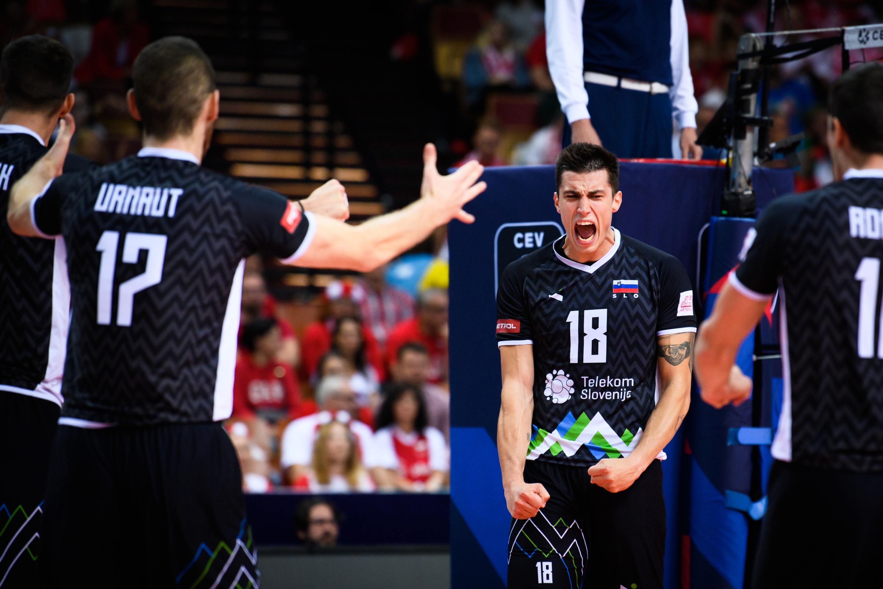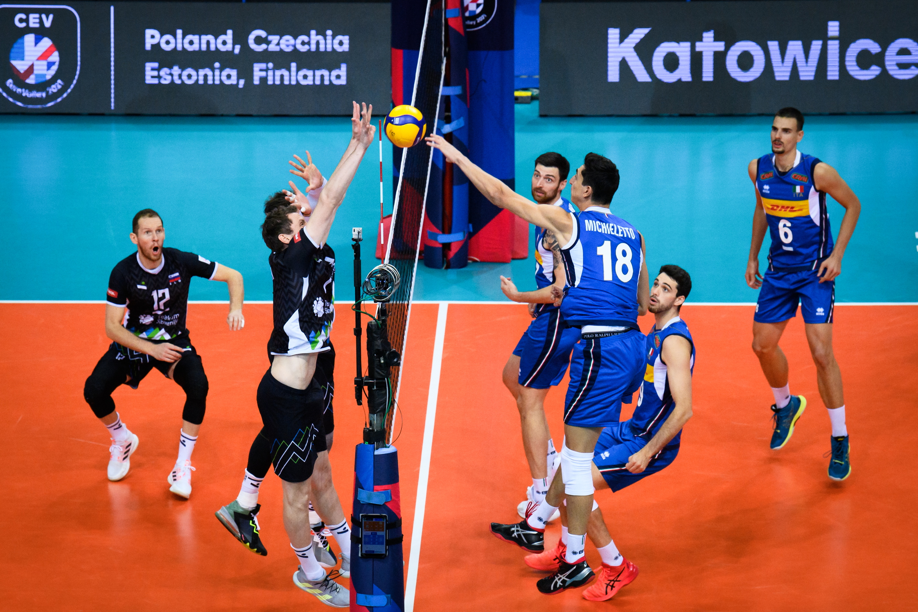 Slovenski selektor Alberto Giuliani je veliki finale evropskega prvenstva, katerega zaključek gostijo poljske Katovice, začel s podajalcem Gregorjem Ropretom, korektorjem Tončkom Šternom, sprejemalcema Tinetom Urnautom in Klemnom Čebuljem, srednjima blokerjema Alenom Pajenkom in Janom Kozamernikom ter prostim igralcem Janijem Kovačičem.