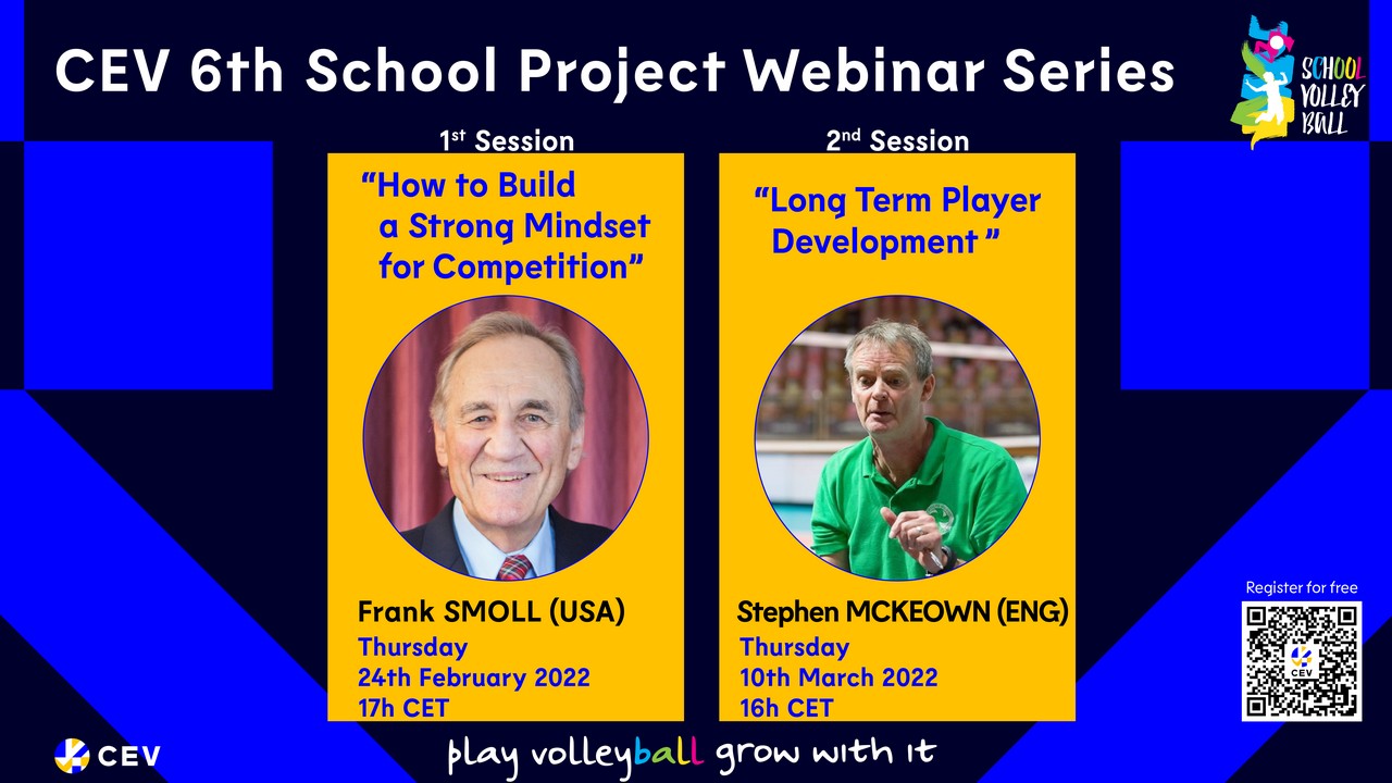 CEV je tokrat k sodelovanju povabila ameriškega strokovnjaka Franka Smolla, ki bo v četrtek, 24. februarja, izvedel webinar z naslovom How to Build a Strong Mindset for Competition oz. Kako zgraditi pravo miselnost za tekmovanja in angleškega strokovnjaka Stephena McKeowna, ki bo v četrtek, 10. marca, spregovoril na temo Long Term Player Development oz. Dolgoročni razvoj igralca.