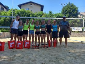 Pri dekletih smo spremljali nastope 19 parov, v močni konkurenci pa je zmaga pripadla Živi Donko in Taji Ferlež, ki sta bili s 24:22 in 21:15 uspešnejši od Zoje Kalar in Rime Posedel. Slednji sta v polfinalnem obračunu z 21:12 in 21:11 odpravili Kajo Debelak in Laro Jelen, Emi Jurič in Ema Pangerc pa sta v boju za uvrstitev v finale s 15:21 in 18:21 klonili proti Donkovi in Ferleževi. Juričeva in Pangerčeva sta bili po zmagi z 21:12 in 21:5 nad Debelakovo in Jelenovo tretji.