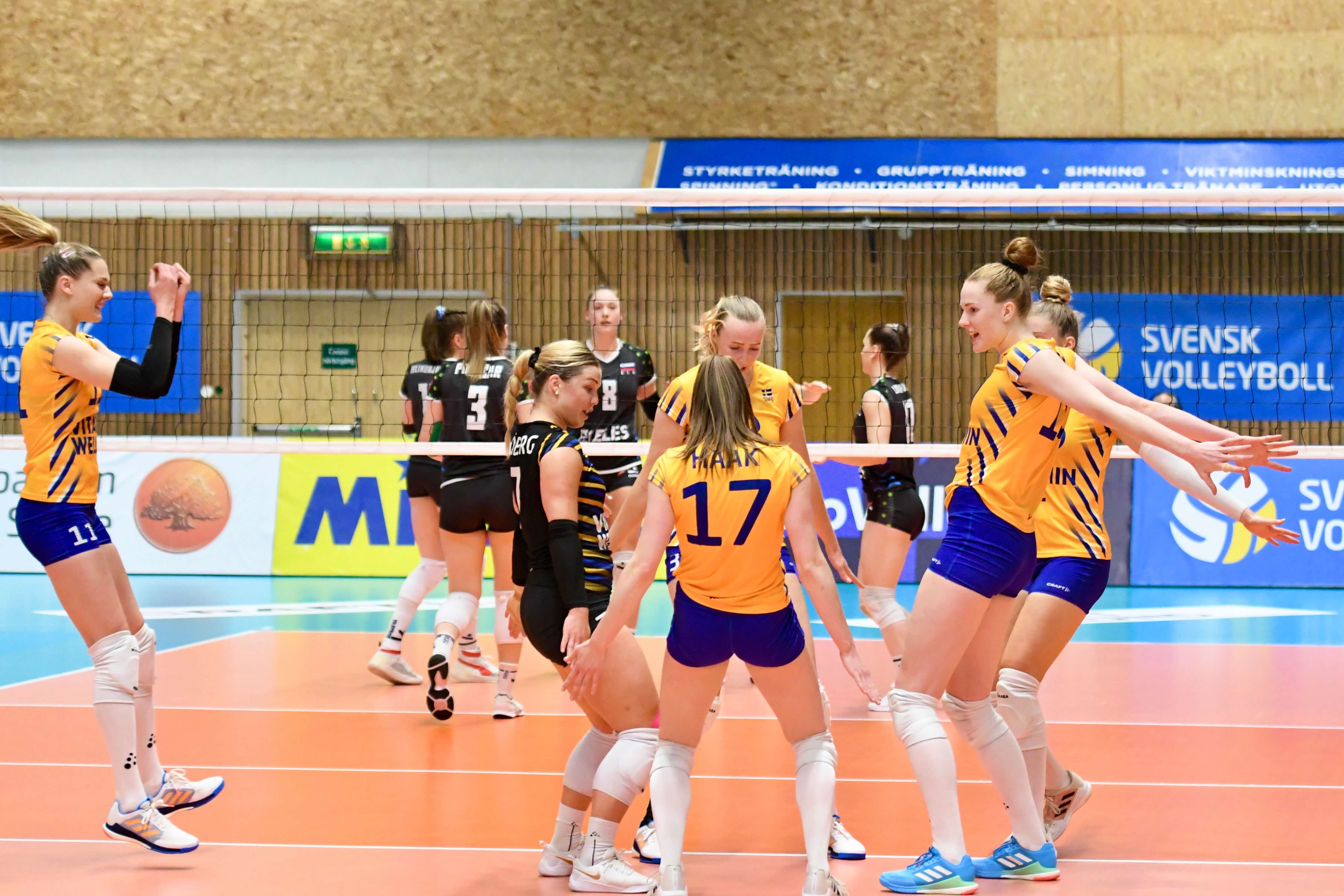 Slovenske odbojkarice so na Švedsko odpotovale s tremi zmagami in tremi porazi, nazadnje so v 6. krogu srebrne evropske lige doma premagale Portugalsko. Varovanke Marca Bonitte so se s Švedinjami srečale že na domačem igrišču v Mislinji, a favoriziranim tekmicam takrat niso bile kos. Bonitta je obračun znova začel s spremenjeno zasedbo. Ob Evi Pogačar na mestu podajalke in Evi Zatkovič na mestu korektorice je v začetni postavi priložnost prvič dobila Tia Koren (kapetanka Saša Planinšec tokrat ni bila pripravljena za igro), ki je ob Mirti Velikonja Grbac zaigrala kot srednje blokerka, na sprejemalskih mestih sta začeli Mija Šiftar in Lorena Lorber Fijok, kot prosta igralka pa Julija Grubišič Čabo.