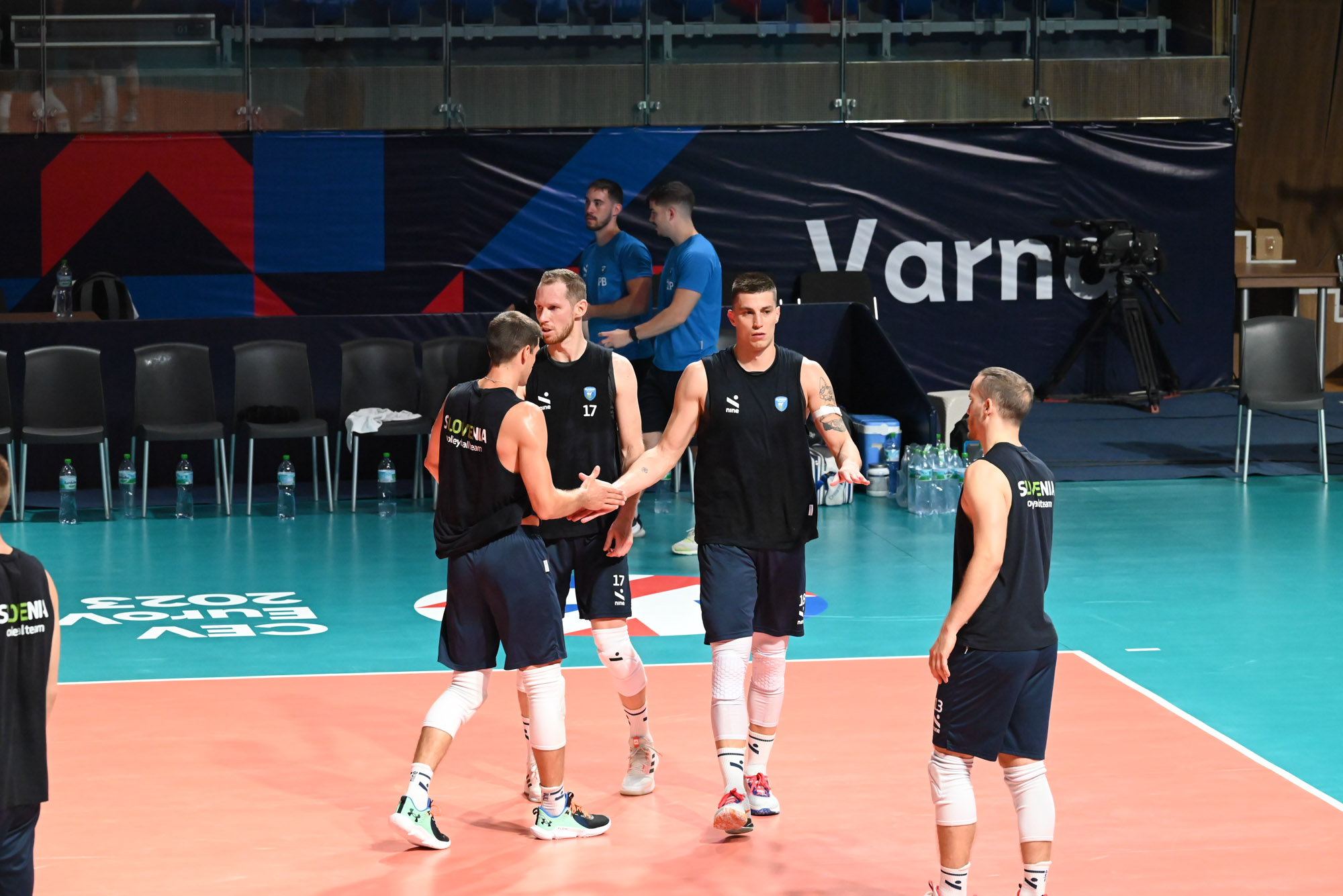 Po ponedeljkovem prihodu v bolgarsko obmorsko mesto, ki bo letos sogostilo evropsko odbojkarsko smetano, so slovenski odbojkarji opravili dva treninga. Prvi dan so vadili v dvorani za treninge, v torek dopoldne pa preizkusili še glavno igrišče v tamkajšnji palači kulture in športa. Pred uvodnim preizkusom so v slovenskem taboru dobro razpoloženi in verjamejo v uspešen začetek tekmovanja.