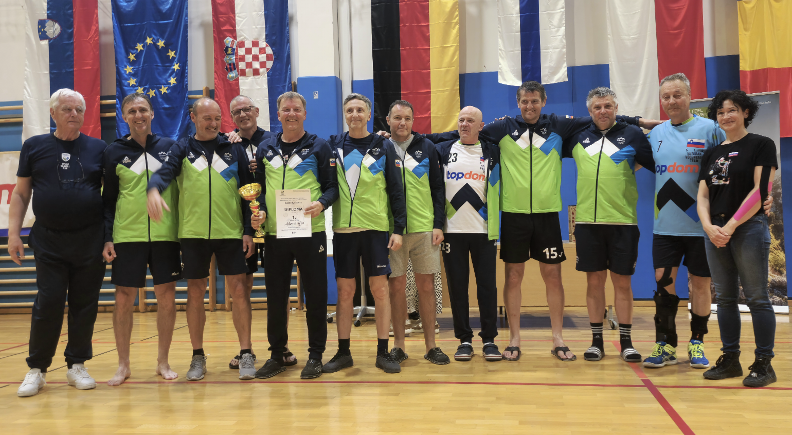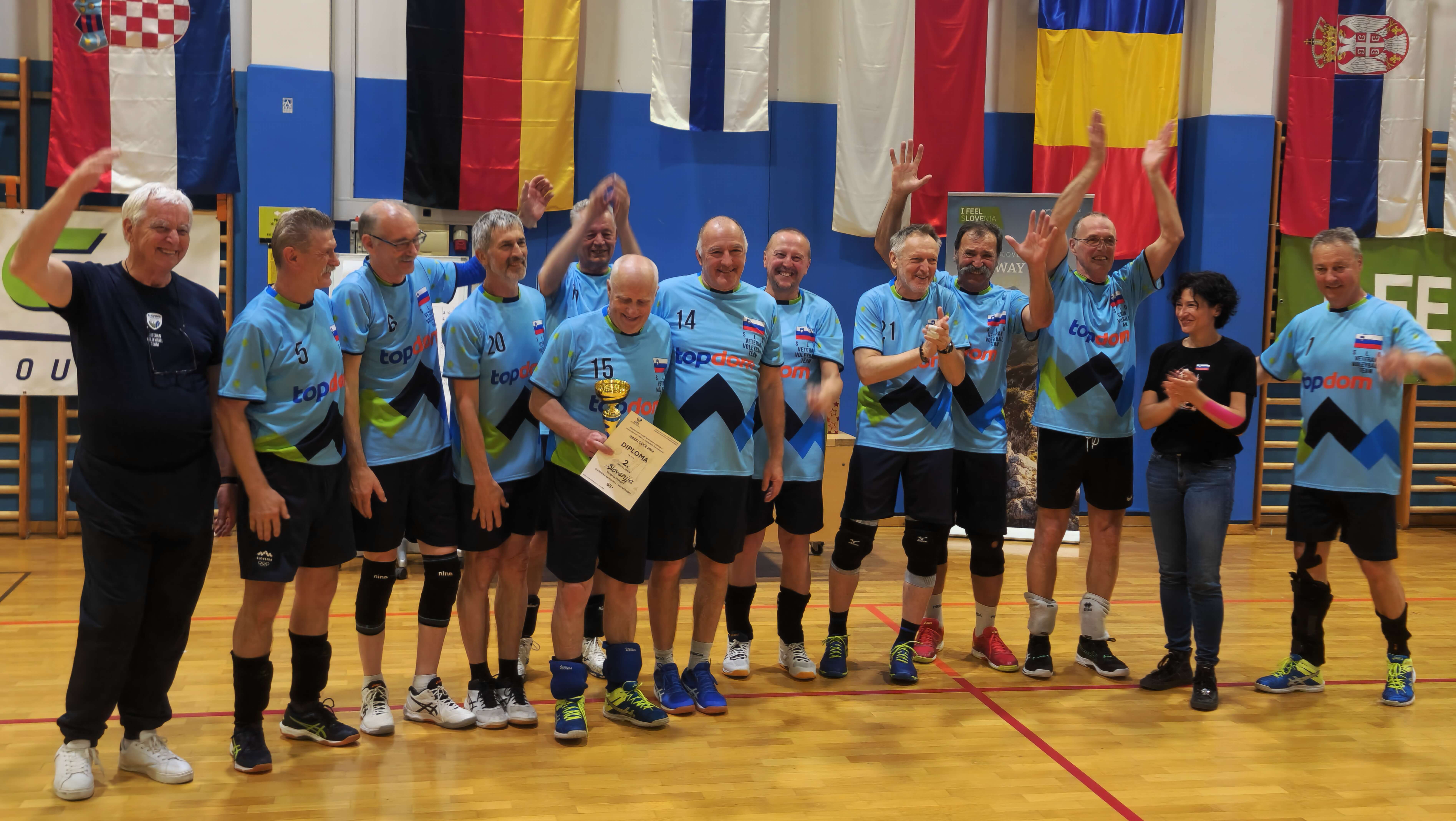 V kategoriji 65+ pa so se med seboj srečale štiri ekipe iz Slovenije, Poljske, Nemčije in Finske. V rednem delu medsebojnih tekem so bili Slovenski odbojkarji, ob bučni podpori s tribun, nepremagljivi. Na finalni tekmi pa so po težki borbi in treh napetih setih (29, -22, -11) klonili proti visoki in izkušeni ekipi Nemčije. Tretje mesto so zasedli Finci, četrtega pa ekipa s Poljske.